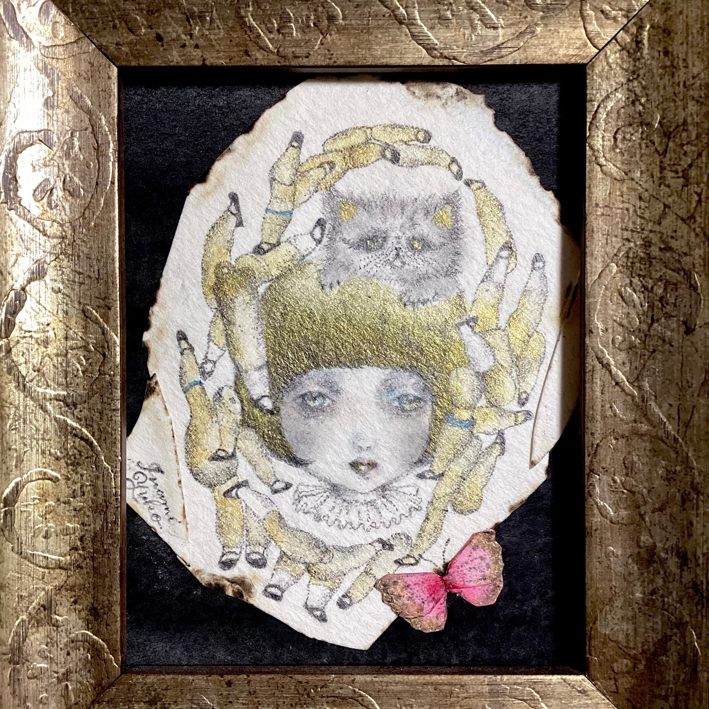 鉛筆や水彩絵の具、パステルを使用していますので直射日光を避けて飾ってください