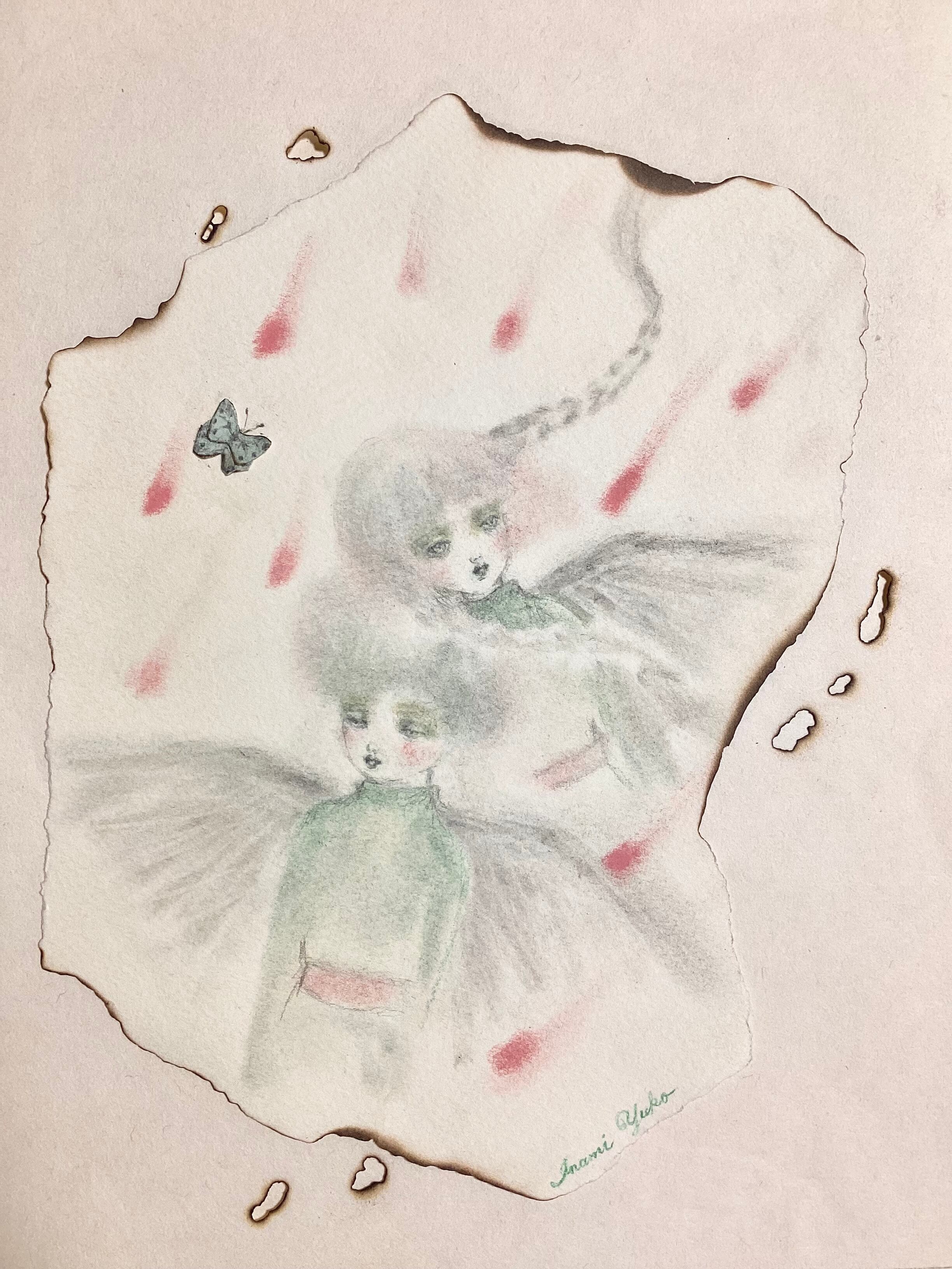 ❇︎水彩紙、水墨画紙、鉛筆、パステルを使った作品ですので直射日光を避けて飾ってください